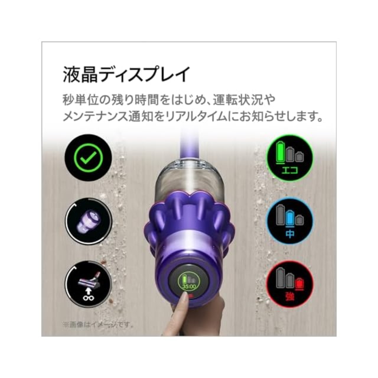 【リアルタイムな表示で、効率的に掃除】液晶ディスプレイが、現在の吸引モードや秒単位の残りの運転時間を表示し、効率的な掃除を可能にします。 また、フィルターのメンテナンス時期や、異物の詰まりなどのトラブルもお知らせします。
