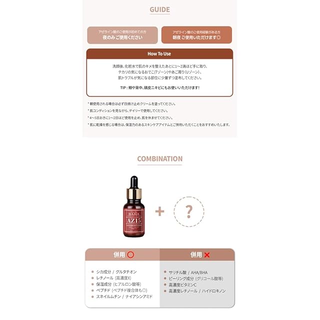 商品名:Cos De BAHA(コスデバハ) AZ15アゼライン酸 15% msm 1% 30ml 美容液 毛穴汚れ 皮脂ケア
