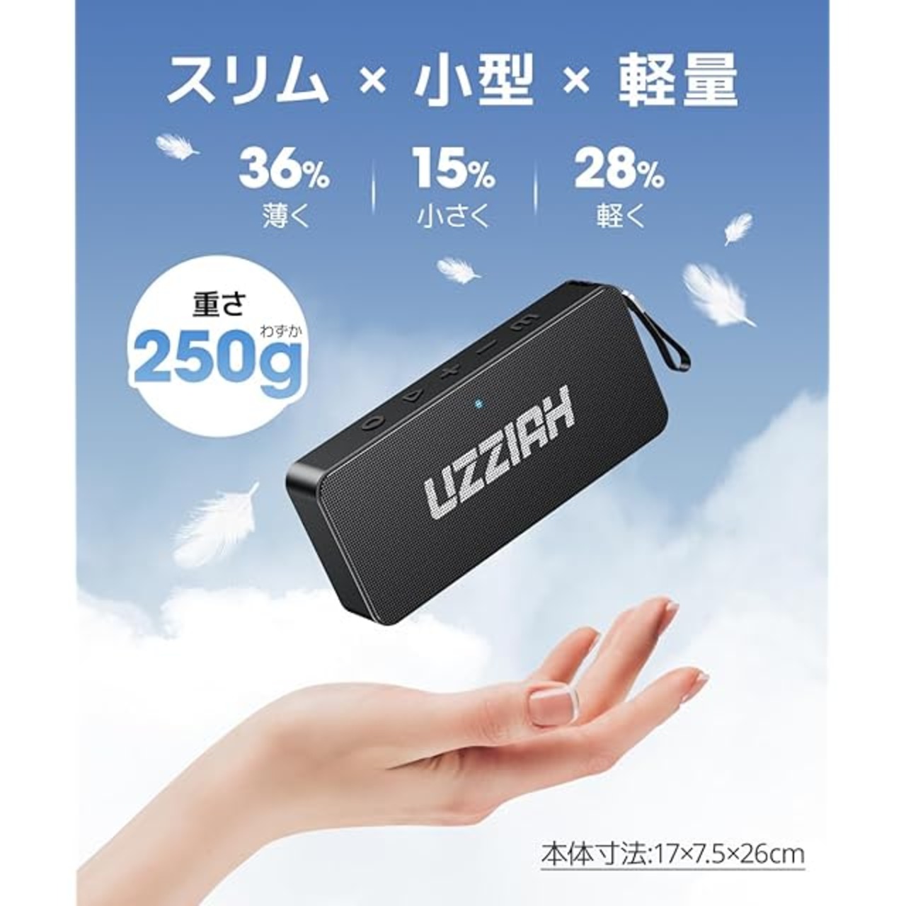 コンパクトながら迫力のあるサウンドを届ける、Bluetooth スピーカー(Bluetooth5.3対応)。高性能ドライバーと重低音を強化する内部設計により、高音質・重低音・没入感を同時に実現。音楽はもちろん、映画鑑賞やゲームプレイにも最適なポータブルスピーカーです。 最新のBluetooth5.3チップを採用し、低遅延かつ安定した接続を確保。スマホ・iPhone・パソコン・テレビ・PS5など幅広く対応し、屋内でも車内でもストレスなく使用できます。さらに、TWS機能搭載で、2台のスピーカーをリンクすれば臨場感のあるステレオ再生も可能です。 36時間連続再生対応の大容量バッテリーに加え、Type-C急速充電対応で充電の手間も軽減。有線・無線両対応なので、状況に応じて使い分けができるのも便利なポイント。マイク内蔵でハンズフリー通話も可能です。また、IPX7防水設計のブルートゥース スピーカーとして、屋外での急な雨や水場でも安心。小型・軽量で持ち運びも簡単、アウトドア・キャンプ・お花見・パーティなどさまざまなシーンで大活躍します。日本語説明書・オーディオケーブル付属で、すぐに使える親切設計です。