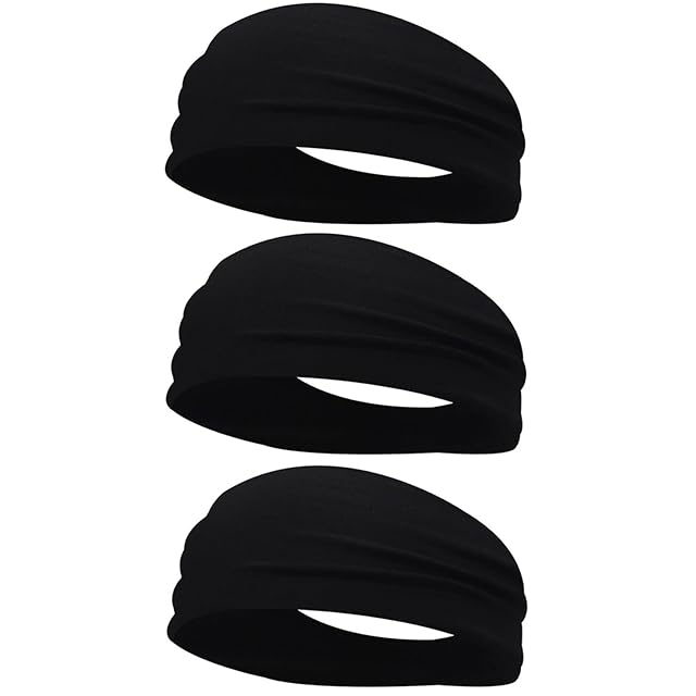AOIIWER ヘッドバンド 汗止め ヘアバンド 3本セット スポーツターバン スポーツ用 薄型 メンズ 伸縮性 通気性あり 軽柔速乾 髪留めらかい ランニング ヨガ ジム 筋トレ アスレチック 洗顔用 男女兼用 (ブラック+ブラック+ブラック) | BASE LINE