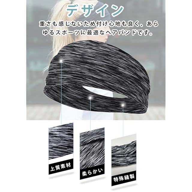 【フィット感デザイン&視界を確保】このスポーツヘアバンドは滑りにくく、安定感が抜群。また溜まった汗は頭の後方に流れていくので、視界を遮る汗も少なくなります。薄手タイプで超軽量であり、重さも感じないため付け心地も良く、あらゆるスポーツに最適なヘッドバンドです。