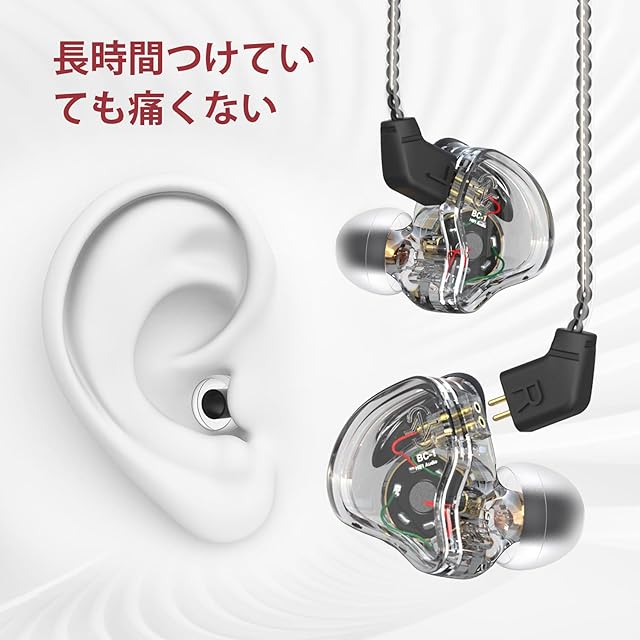 シリコン材料使いイヤホン イヤーピースは柔らかくて耳の中に圧力のかからない装着感を実現、長時間使用しても不快感がありません。