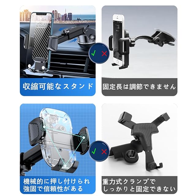 【2025新バージョンアップ】「吸盤式&送風口式両用で超便利」改良された車 スマホホルダーは吹き出し口式だけではなく、ゲル吸盤式ホルダーとしてダッシュボード、フロントガラスに装着してご使用頂けます。「取付簡単でプレゼントに最適」初心者でもすぐ使いこなせるように、車への取り付けがとても簡単です。すまほほるだーはワンタッチで使用できて操作性も抜群です。また、本製品は梱包に加え、細部まで拘ってデザインされ、全体的に高級感が溢れています。安全な運転環境を作り、大変実用性有るので、温かいプレゼントとしては喜ばせていただきます。