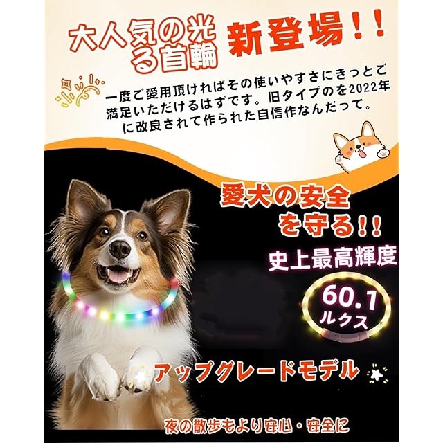輝度83%アップ+11個の高輝度LEDランプ:アップグレード版11灯配列で、通常の犬用光る首輪より83%明るく、夜間400m先からも視認可能。愛犬を暗闇で目立たせます。