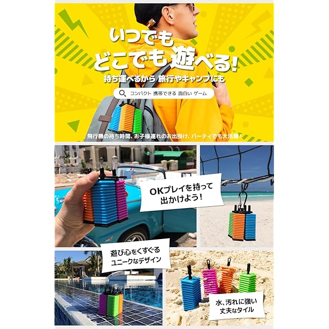 ✅【 コンパクトで持ち運びがカンタン 】 クリップ付きでバッグにつけたり、ハッグの中にかんたんに収納できます。 自宅、ホテル、電車、飛行機の中、パーティ、公園、キャンプなどあらゆるシチュエーションにぴったり。 1プレイ15分程度で友だちや家族と気軽にゲームを楽しめます。
