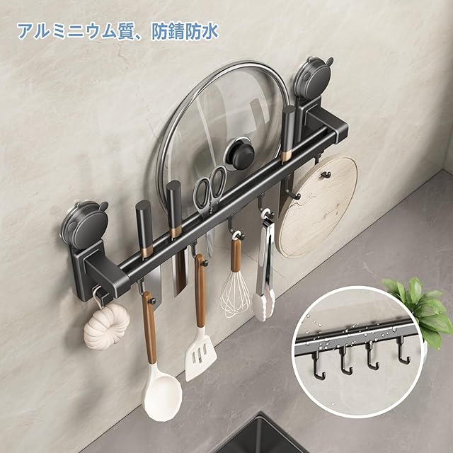 商品名:キッチンツールフック 壁掛け 粘着 吸盤 強力 壁美人 台所 収納 調理器具 収納 壁に穴を開けないフック 金属 アルミニウム 防水防錆 40cm 6個フック CICUFY