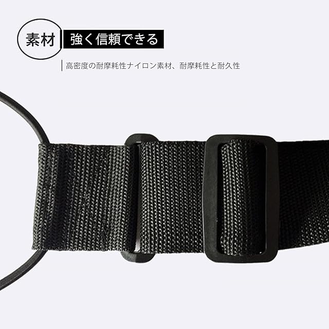 【サイズ】 [幅]5 CM、ゴム部:[直径]12 CM、[ベルト部長さ]26~40CM(の間で調整可能)、[ゴム部込みの全長]50~64 CM。金具などがなく、バッグや荷物を傷つけることもありません。