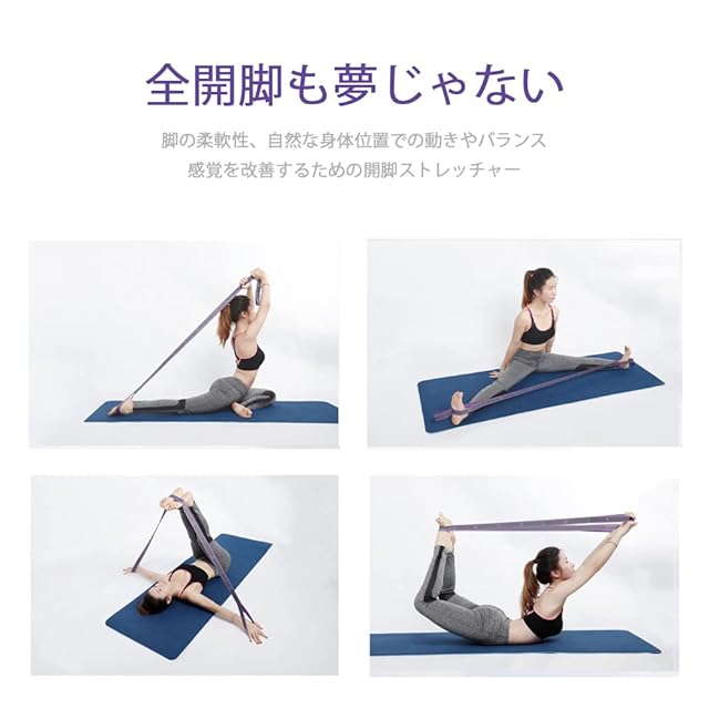 YFFSFDC バレエ ストレッチバンド 開脚ストレッチャー ヨガストレッチストラップ 高弾性 9段階の強度 フィットネスバンド ヨガ/ダンス/体操/バレエ/テコンドーなど器具 滑り止め 調整可能 柔軟運動 トレーニングベルト (パープル) | BASE LINE