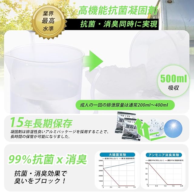 ✅ 【抜群の抗菌性・消臭性】「吸水力」「抗菌性」「消臭性」を兼ね備えた高性能凝固剤を採用!簡易トイレ凝固剤は10g入っており、約30秒で400mlの水分をしっかりと固めて「吸水力」がすごいです。しかも、抗菌・消臭の効果があるので、排尿後の異臭を心配する必要がなくし、菌の増殖を防ぐこともできます。(※汚物袋が防臭機能がありません。臭いの感じ方には個人差がありますので、排泄後はお早めに処理してください。)