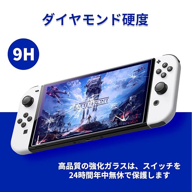 【高品質素材製・飛散防止・傷防止】Switch OLED用保護フィルムは国産AGC旭硝子ガラスを使っており、4.5時間の高温焼入れ処理して、強化を繰り返し、硬さは業界トップレベルの9Hに達しました。市販の通常製品の5倍の硬さに達し、ナイフなどの鋭いものでも傷しません。日々の生活の中で発生するスリ傷から液晶画面を保護します。衝撃吸収の特性により、転落とかの外力からスクリーンへの衝撃ダメージを最小限に抑えることができます。また、飛散防止加工されておりますので、万が一割れの場合でも、破片が飛び散らず張り付いた安全の状態になります。