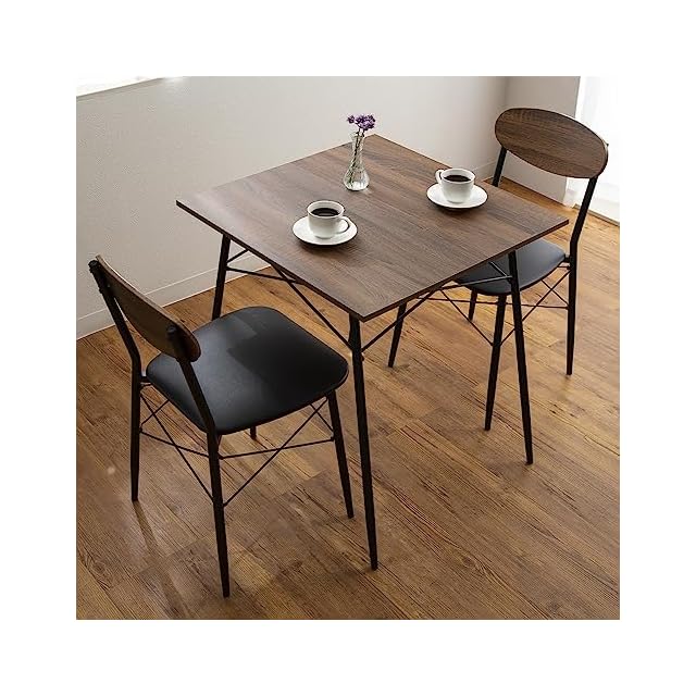 アイリスプラザ ダイニングテーブルセット 3点セット ダイニングテーブル リビングテーブル セット 幅:70cm スチール (テーブル×1、チェア×2) STDSET-3 ヴィンテージデザイン ブラウン おしゃれ 北欧 | BASE LINE