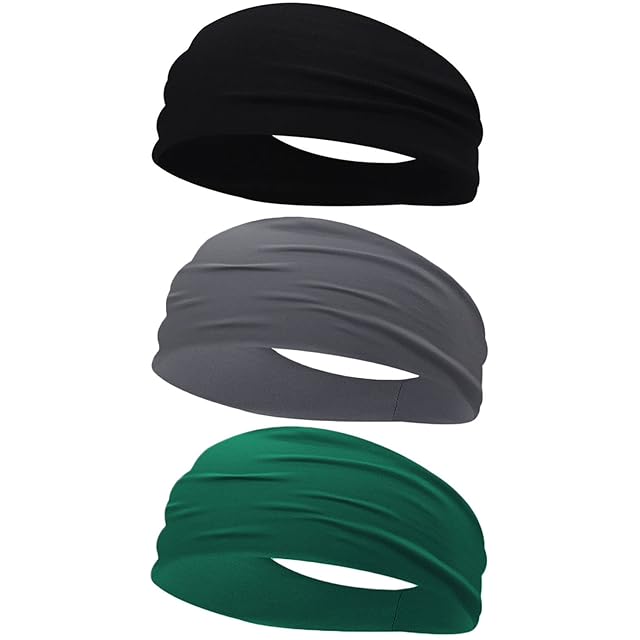 AOIIWER ヘッドバンド 汗止め ヘアバンド 3本セット スポーツターバン スポーツ用 薄型 メンズ 伸縮性 通気性あり 軽柔速乾 髪留めらかい ランニング ヨガ ジム 筋トレ アスレチック 洗顔用 男女兼用 (ブラック+ダークグレー+グリーン) | BASE LINE