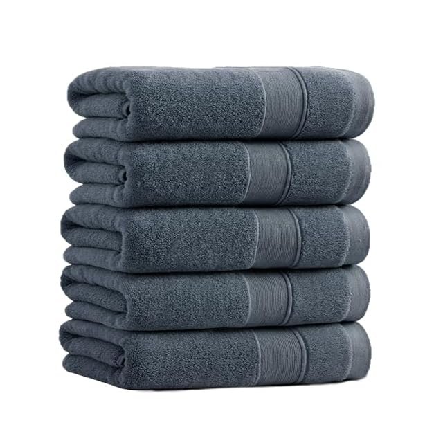 フェイスタオル HOSUR 綿100% ホテル仕様 厚手 ふかふか ボリューム 高速吸水 耐久性 速乾 瞬間吸水耐久性 無地 毛羽落ち少ない ギフト(スモーキーブルー,5枚組/フェイスタオル) | BASE LINE