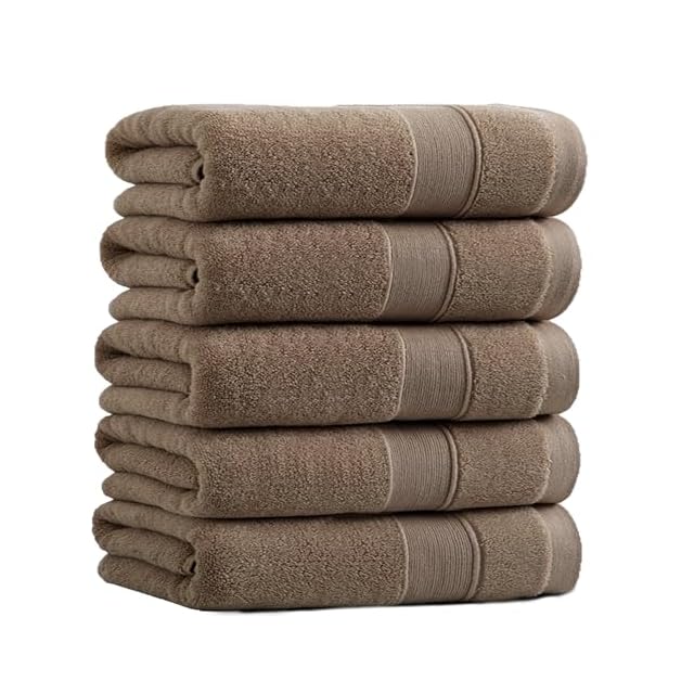 フェイスタオル HOSUR 綿100% ホテル仕様 厚手 ふかふか ボリューム 高速吸水 耐久性 速乾 瞬間吸水耐久性 無地 毛羽落ち少ない ギフト(ダークブラウン,5枚組/フェイスタオル) | BASE LINE