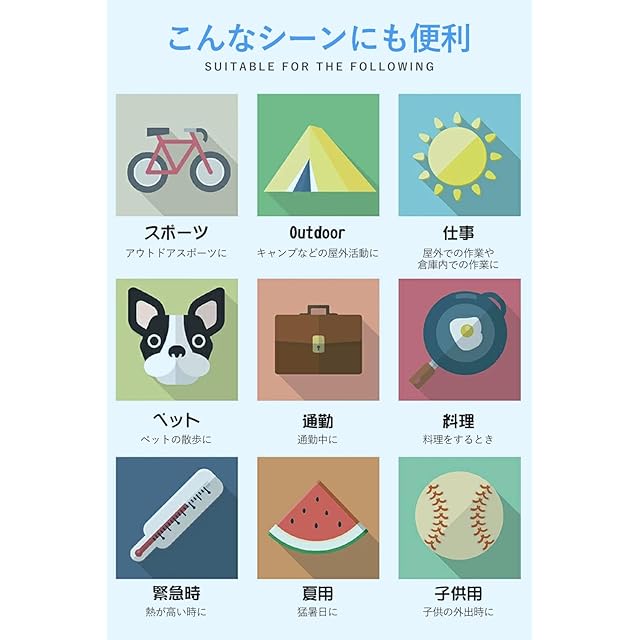 完全品質体制:100%自社工場生産(ISO9001認証取得済み)。出荷前三次元測定検査を実施し、品質を厳格に管理。PCM充填量検査機導入(公差±0.5%の高精度管理)。365日無料交換を提供(液漏れ・破損時は即日対応)。熱中症予防、家庭冷却、オフィス利用、花火大会、釣り、ゴルフなど、多彩なシーンに対応します。