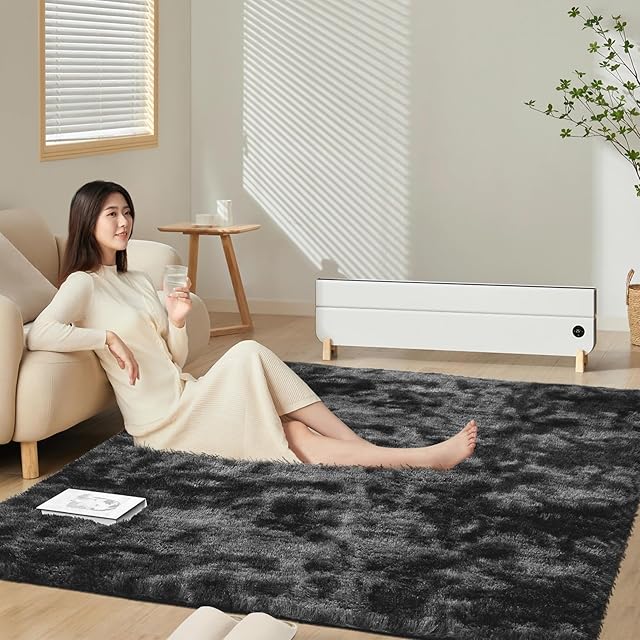 SOMANT カーペット ラグ 2畳 オールシーズン 洗える 低反発 厚手 抗菌防臭加工 防音 防ダニ ラグマット シャギーラグ 滑り止め付き 暖かい ラグ マット リビング寝室用 185×185cm ブラック×グレー | BASE LINE