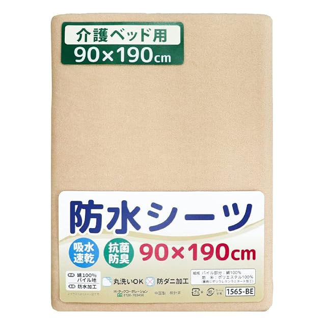 商品名:un doudou 防水 おねしょシーツ 90×190cm 介護ベッド 標準サイズ 吸水速乾 抗菌防臭 防ダニ パイル地 綿100% 四隅ゴム付き ベージュ 1565-BE