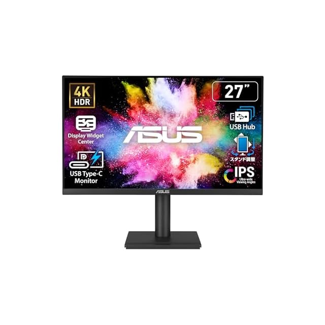 商品名:【.co.jp限定】 ASUSモニター / VA27UCPS ? 27インチ / 4K UHD (3840 x 2160) / IPSパネル / 99% sRGB/HDR-10 / USB-C 65W給電 / 高さ調整 縦横回転機能付き/ステレオスピーカー/フリッカーフリー/ブルーライトフィルター/エルゴノミクスデザイン/壁掛け対応/環境サスティナビリティ/国内正規品/5年/