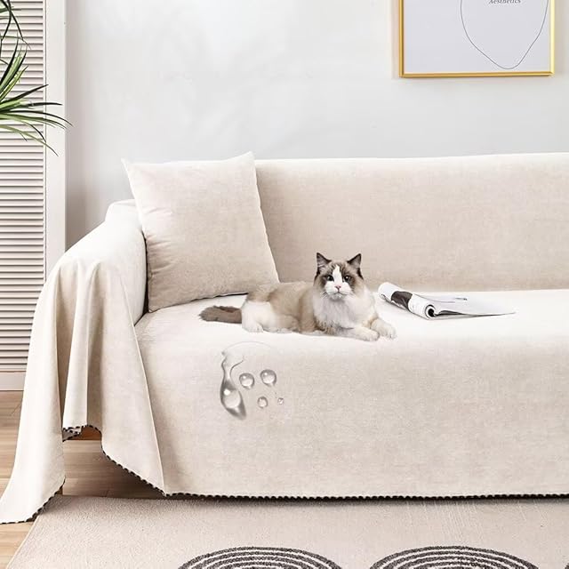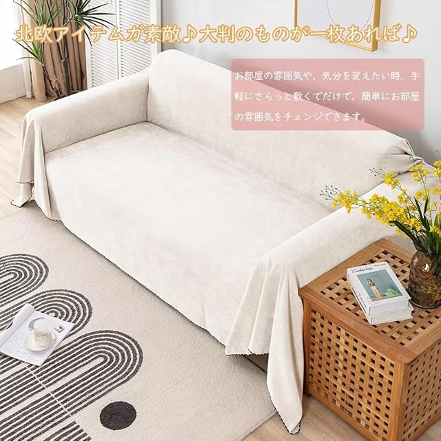 YKFN マルチカバー ソファーカバー 1人2人3人4人掛け 肘付き 肘なし 防水 かけるだけ ソファカバー 北欧 おしゃれ ペット対応 猫の毛つきにくい 滑り止め ブランケット 無地 ズレにくい 撥水 犬猫用 爪研ぎ防止 防水カバー 防塵カバー ベッドカバー 保護カバー 汚れ防止 四季通用 ベージュ 180*420CM | BASE LINE