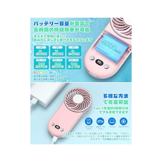 商品名:ハンディファン【2025夏新昇級・接触冷感 急速冷却・折り畳み】扇風機 大風量 携帯 持ち運び小型 冷却プレート搭載 TYPE-C充電式 LCD液晶画面 残量表示 軽量 3段階風力調節3WAY 強力静音 熱中症対策暑さ対策長時間稼働 首掛けストラップ付き 卓上 手持ち ホリデーギフトピンク