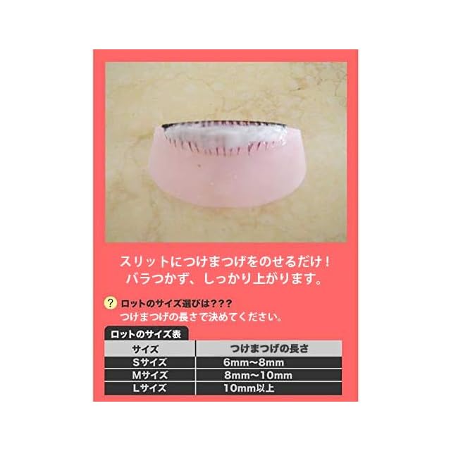セット内容:つけまつげ用パーマ液酸化しないパウチ1.2液0.5g入り3セット/ つけまつげ用クリアグルー/ 小悪魔ギザギザロット1セット(S,M,Lのどれかお選びください。) ロットの厚み:Sサイズ約0.5mm/Mサイズ約1mm/Lサイズ約1.5mm ★☆★☆★ここポイント!国産なので発ガン物質0%、 パウチのパーマ液は長期保管を想定してパーマ液を守るために 窒素を充填しております。 窒素はポテトチップスなどの袋にも 充填されている気体で安全です。 そのため朝晩の寒暖差(温度差)で パウチ容器が膨らむ場合がございます。 ご使用上は全く問題ありません。 膨らんだ場合は成分が分離する事があるので ご使用前に良く混ぜてから塗布してください。 よくあるご質問 ◇Q:ナイロン系の付けまつげには使えませんか? ◆A:人毛100%の付けまつげ以外はパーマがかかりません。 ◇Q:時間が短いのは液が強いからですか? ◆A:液が強いのではなくキューティクルを早く開かせる成分が含まれています。 ◇Q:自分のまつげにパーマは出来ますか? ◆A:付けまつげ以外は使用できません。 ご購入を持ちましてご理解、ご了承頂いたと判断致します。 パーマ液の成分:チオグリコール酸モノエタノールアミン、モノエタノールアミン、セタノール、ラノリン、塩化セチルトリメチルメチルアンモニウム、塩化アルクルトリメチルアンモニウム、ミリスチン酸イソプロピル、香料、青色1号 注意:幼少児の手の届かない所に保管してください。本品は飲み物ではありません。本品は食べられません。※施術説明書は薬機法違反になってしまうので同封しておりません。検索してください。