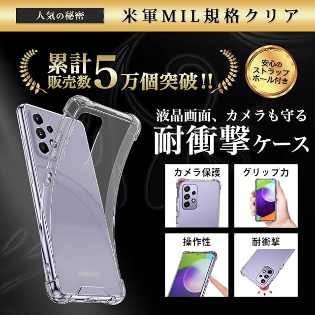 商品名:Hy+ Galaxy A52 5G 耐衝撃 ケース SC-53B カバー ストラップホール 米軍MIL規格 クリア 衝撃吸収ポケット内蔵 TPU ケース