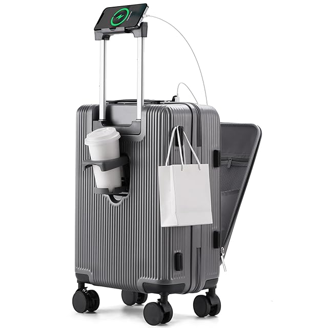商品名:[RIMUKE] 前開きキャリーケース スーツケース機内持ち込み 耐衝撃 超軽量 USBポート付き Mサイズ 大容量 4-7泊 旅行 ビジネス 出張 グレー