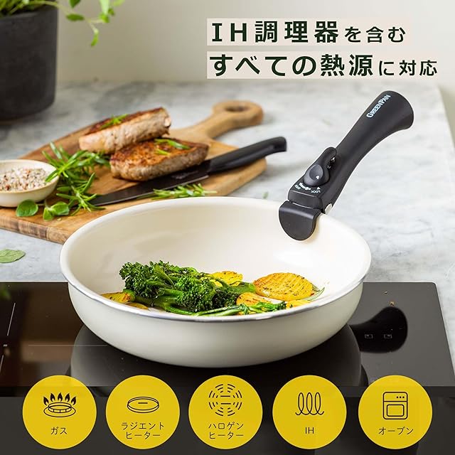 商品名:グリーンパン GREENPAN フライパン 26cm 単品 取っ手のとれる IH ガス 食洗機 対応 有害物質不使用 PFASフリー セラミックコーティング 【クリックシェフ】 こびりつきにくい 汚れが落としやすい クリーム ホワイト
