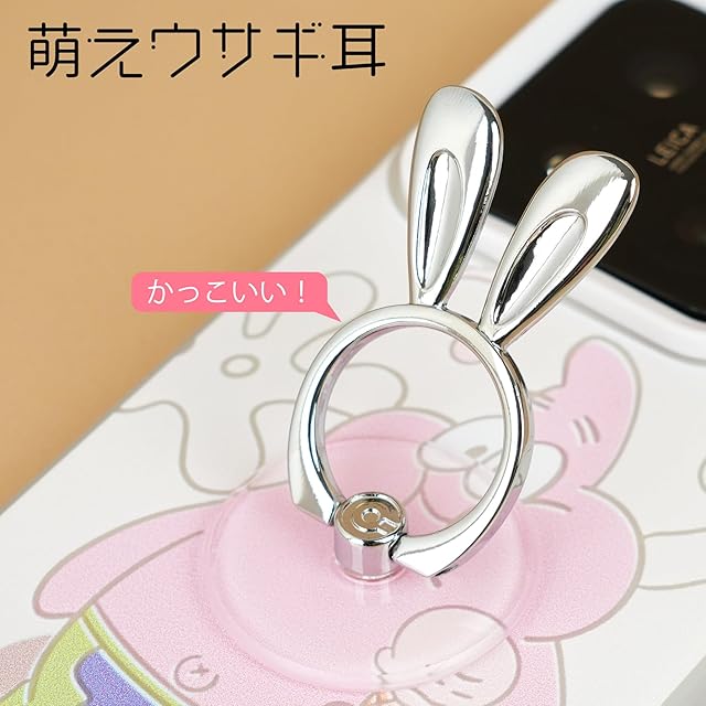 商品名:兎 透明 スマホリング ウサギ 落下防止リング ホールドリング 薄型 スタンド 車載ホルダー 360回転 iPhone/Android各種他対応 (兎型1個バラの金+1個銀)