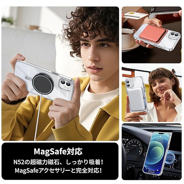 「Magsafe対応」ケースをつけたままマグセーフ機能を快適に使用できます。背面に薄くて強いマグネット内蔵しています、ワイヤレス充電や車載ホルダーやアクセサリとのあらゆる充電に安定で接着ができ、差し込みのいらないより簡単により素早く充電できます。「全てのMagSafe付きデバイス対応、Qi充電には対応していません。」