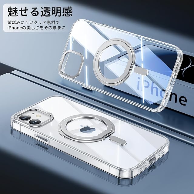 商品名:iPhone 11 適用 ケース Magsafe対応 アイフォン11 カバー 360°回転スタンド Uovon スマホケース アイホン 11 携帯ケース ワイヤレス充電 車載ホルダー 対応 ストラップ穴付き 透明 指紋防止 黄变防止 ・ クリア