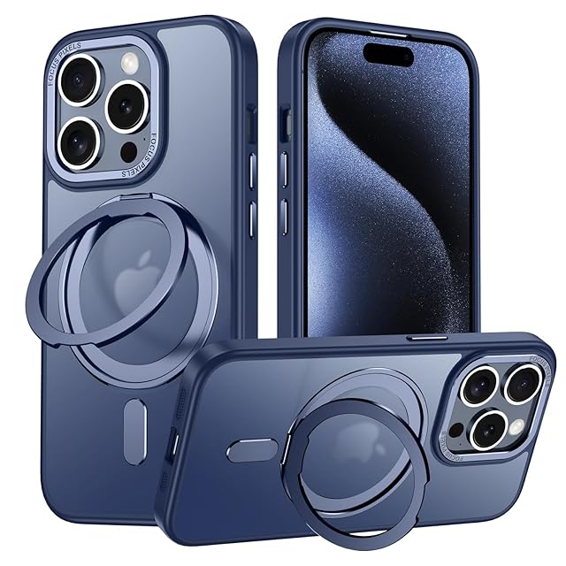 商品名:iPhone 14 Pro 適用 ケース Magsafe対応 アイフォン14プロ カバー 360°回転スタンド Uovon スマホケース アイホン 14pro 携帯ケース ワイヤレス充電 車載ホルダー 対応 ストラップ穴付き 半透明 指紋防止 黄变防止 ・ ブルー