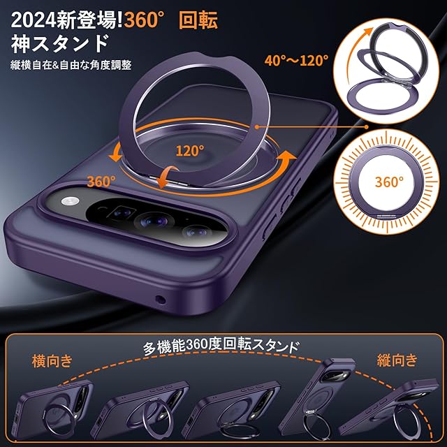 【多機能360度!縦も横も思いのまま!】:背面に搭載された嵌め込み式リングは、安定したアルミ合金製の円形スタンドを採用しており、従来のリングと比較して滑りにくく、安定したグリップを提供します。360°回転スタンド機能により、縦置き・横置きどちらの状態でも安定して利用でき、0°~ 120°の間で多角度自由に調整できます。動画視聴やFaceTimeを利用する際には、両手を解放し。外出先でも手軽に使用でき、リングやスタンドを持ち歩く必要がない。ケースを開けるだけでスタンドの完成!指にかければリングも便利に使用でき!ケースを閉じれば背面はスマートに平坦に。無限の使い方が可能で、機能性を重視する方にはぜひ手に取ってみてください!【Google Pixel 10/10 Pro 用 ケース / グーグル ピクセル 10/10 プロ 用 ケース / ぐーくるぴくせる10/10 Pro 用 ケース】