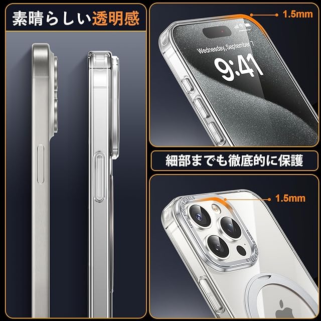 【MagSafe対応・磁力アップグレード】:強力なN52磁石を搭載しており、磁石吸着力は従来より10倍高め、ケースを装着したまま高速ワイヤレス充電が可能です、充電時の熱を周囲に発散して。Magsafe充電がかつてないほど簡単にできます!強い磁力により車運転中の激しい振動でもMagsafe車載ホルダーから外れることなく、市販のあらゆるMagsafeアクセサリーに簡単対応!いくら振っても落ちないので、充電しながらゲームをやっても問題なし!【 iphone 14 Pro 用 ケース アイフォン14Pro 用 ケース アイホン14プロ 用ケース】