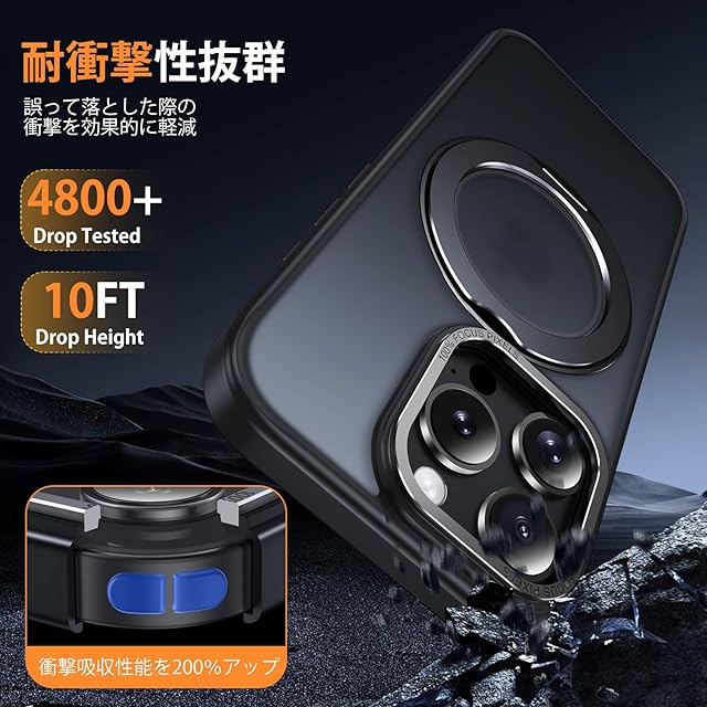 iPhone 14 Pro Max 用 ケース Magsafe対応 ワイヤレス充電 360°回転スタンド 縦横両対応 Gunwon スマホケース iphone14 Pro Max 用 米軍規格 耐衝撃 半透明 マット感 マグセーフ 防指紋 リング マグネット搭載 アイフォン14プロマックス 用 カバー「ブラック」 | BASE LINE