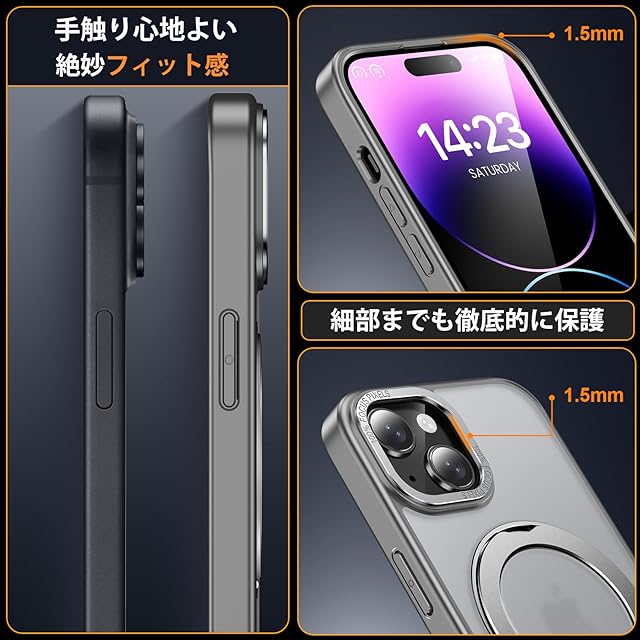 【MagSafe対応・磁力アップグレード】:強力なN52磁石を搭載しており、磁石吸着力は従来より10倍高め、ケースを装着したまま高速ワイヤレス充電が可能です、充電時の熱を周囲に発散して。Magsafe充電がかつてないほど簡単にできます!強い磁力により車運転中の激しい振動でもMagsafe車載ホルダーから外れることなく、市販のあらゆるMagsafeアクセサリーに簡単対応!いくら振っても落ちないので、充電しながらゲームをやっても問題なし!【 iphone 15 Plus 用 ケース アイフォン15Plus 用 ケース アイホン15プラス用ケース】