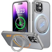 iPhone 15 Plus 用 ケース Magsafe対応 ワイヤレス充電 360°回転スタンド 縦横両対応 Gunwon スマホケース iphone15 Plus 用 米軍規格 耐衝撃 半透明 マット感 マグセーフ 防指紋 リング マグネット搭載 アイフォン15プラス 用 カバー「グレー」 | BASE LINE