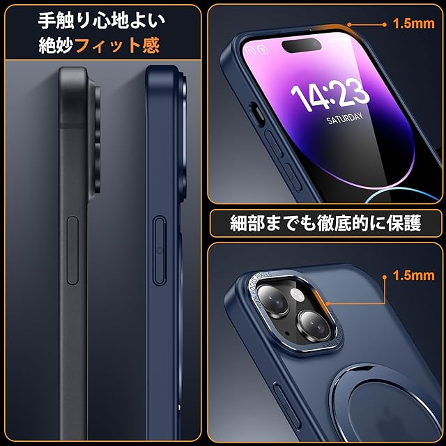 【多機能360度!縦も横も思いのまま!】:背面に搭載された嵌め込み式リングは、安定したアルミ合金製の円形スタンドを採用しており、従来のリングと比較して滑りにくく、安定したグリップを提供します。360°回転スタンド機能により、縦置き・横置きどちらの状態でも安定して利用でき、0°~ 120°の間で多角度自由に調整できます。動画視聴やFaceTimeを利用する際には、両手を解放し。外出先でも手軽に使用でき、リングやスタンドを持ち歩く必要がない。ケースを開けるだけでスタンドの完成!指にかければリングも便利に使用でき!ケースを閉じれば背面はスマートに平坦に。無限の使い方が可能で、機能性を重視する方にはぜひ手に取ってみてください!【 iphone 15 Plus 用 ケース アイフォン15Plus 用 ケース アイホン15プラス用ケース】