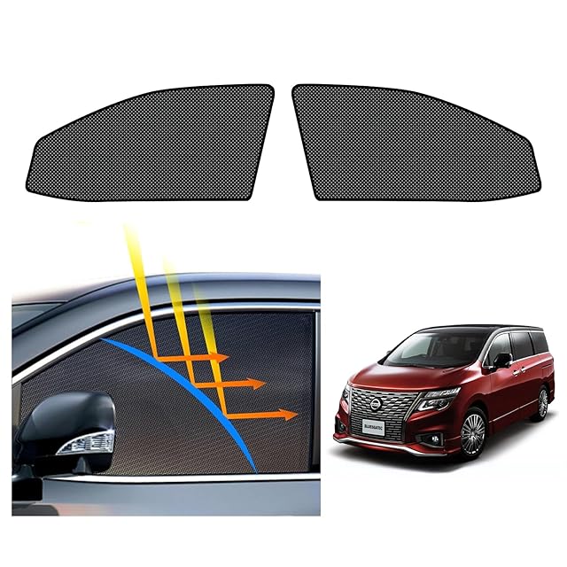 BLUESEATEC 日産 エルグランド 52系 メッシュカーテン 遮光 マグネット式 サンシェード サイド用 ELGRAND H22.8-現行 日除け UVカット簡単着脱 運転席 助手席 アクセサリー 収納袋付き 2枚 | BASE LINE