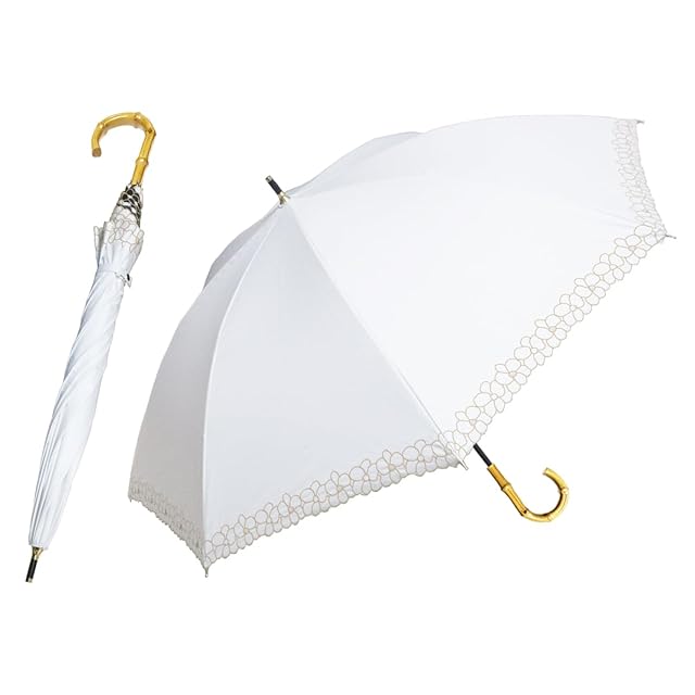 hiino kano 傘 レディース 日傘 uvカット 遮光 長傘 日傘兼用雨傘 レディース 超軽量 約250g バンブーハンドル 母の日のプレゼント 敬老の日 ギフト 誕生日プレゼント おしゃれ 晴雨兼用傘 超撥水 遮光遮熱 8本骨 親骨50cm (花柄刺繍・ホワイト) | BASE LINE