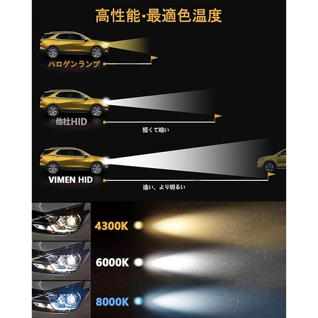 商品名:VIMEN D1S HID バルブ 4300K 純正交換用 D1C汎用 HIDライト 12V 車用 ヘッドライト 35W HID 電球 35W 2個入