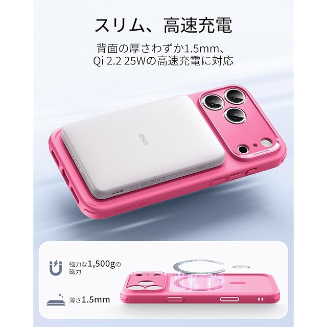 【強力な磁気ロック 】ESR iPhone 17 Pro ケースの1,500gの保持力を誇る強力な磁気リングにより、より速く簡単なワイヤレス充電が可能です。あらゆるMagSafeアクセサリーと安定した接続を実現します