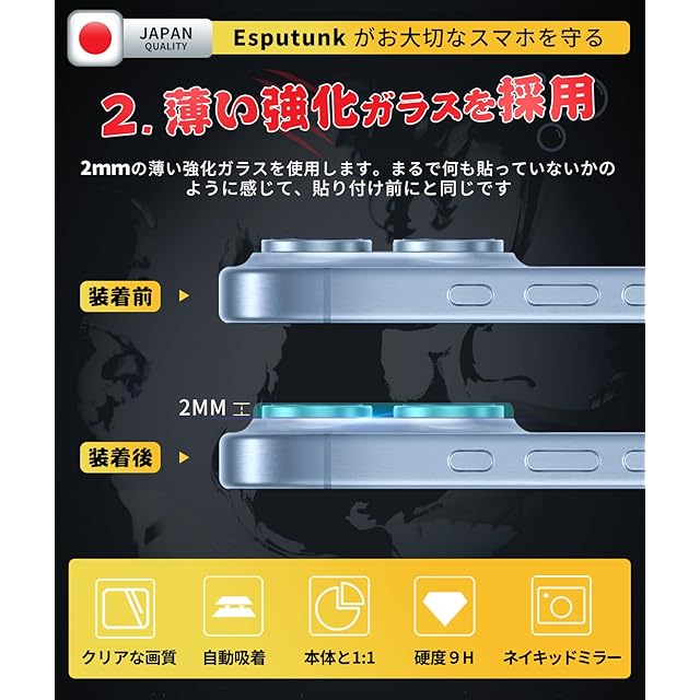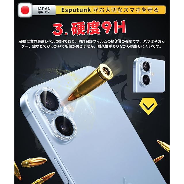 商品名:Esputunk 対応 iPhone17 カメラフィルム カメラカバー iPhone 16 適用 レンズフィルム【日本旭硝子製-2枚 全面保護 極薄 高鮮明度 高透過率】 アイフォン17 レンズフィルム アイフォン16 カメラカバー キズ防止 硬度9H 装着簡単 カメラ保護フィルム