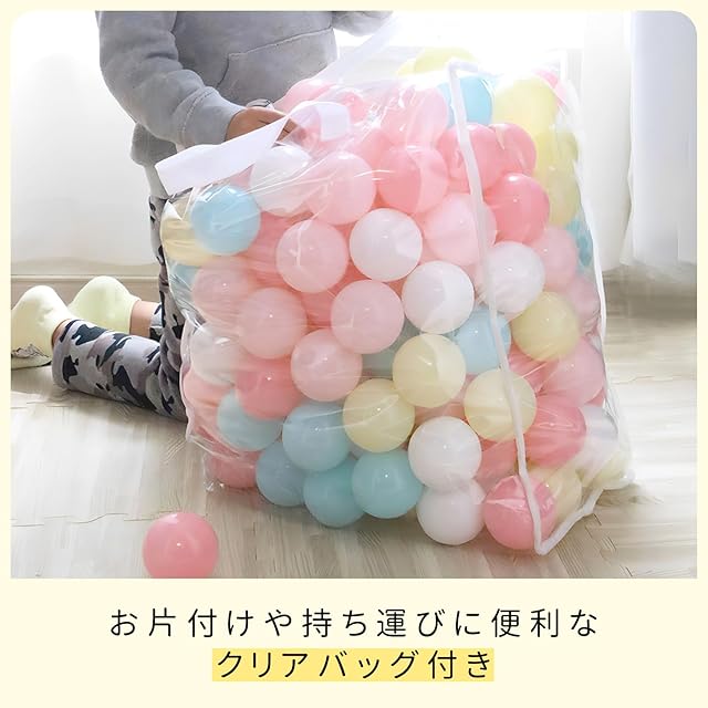 家庭用のボールプールやキッズテントにぴったりなカラーのカラーボール! お子様の安全を考え、ボールはつぶれにくく柔らかい素材を使用。 軽くて持ち運びやすいクリアケース付きなので、お片付けも楽々♪ お出かけ先や友達のお家に持って行くのにも便利です。