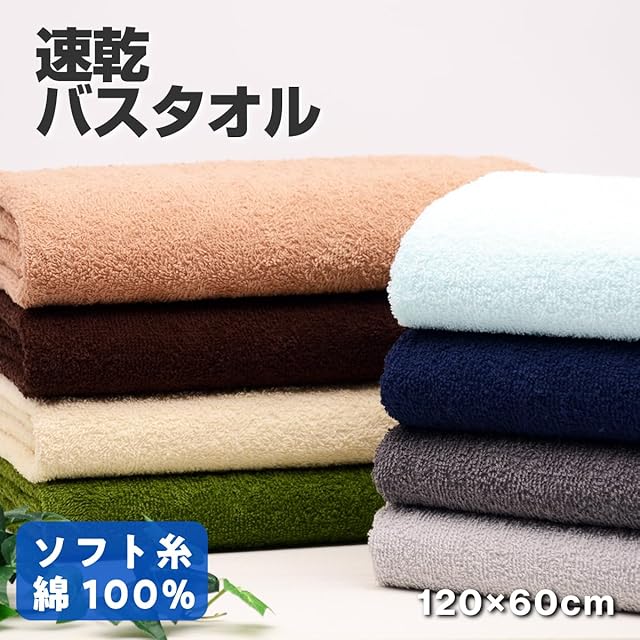 [19inch] バスタオル 3枚 綿100% 120×60cm 薄手 軽量 速乾 吸水 シンプル無地 6色展開 部屋干しOK 毎日使いに メンズにも人気 ディープカラー bath towe 3枚入 オリーブ | BASE LINE