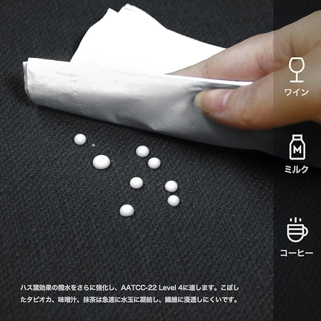 【撥水加工】:撥水加工の工芸を採用して、こぼれた水分・油分をはじき浸透しにくい、簡単に拭き取ることができます。いつでも食卓の清潔に保つことができます。