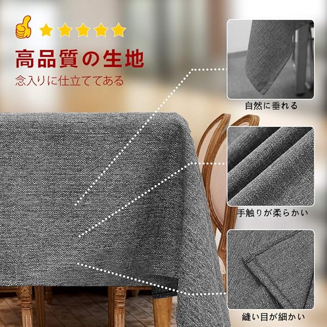 BALCONY & FALCON テーブルクロス 北欧 おしゃれ 撥水 加工 140*180cm 長方形 布製 類麻 リネン 無地 防水 防汚 防油 高耐久 上品質 お手入れ簡単 洗えるテーブルクロス 厚手 高級 グレー | BASE LINE