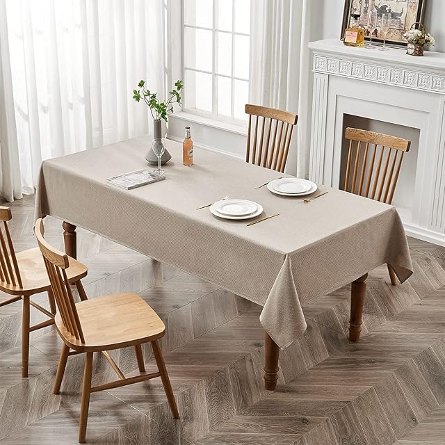 BALCONY & FALCON ジャカード テーブルクロス 厚手 類麻 長方形 高級 布 洗える おしゃれ ソフト 防水テーブルクロス 145x300cm 高耐久 手入れ簡単 テーブルカバー ベージュ | BASE LINE