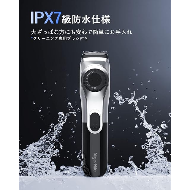 【IPX7級防水・清潔快適】IPX7級全身防水設計を採用し、お風呂でもらくらくセルフカット。髭トリマー本体は丸ごと水洗いできるので、刃の部分に毛クズや皮脂汚れは水でササッと洗い流せ、後片付けが手軽にできます。人体工学に基づいて握りやすい設計、快適な手触りで濡れても滑り落ちの心配がありません。