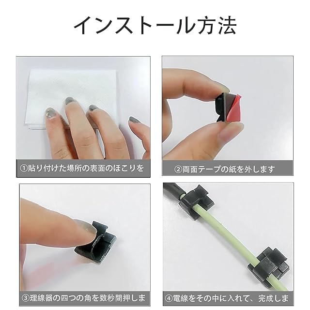 【簡単なインストール】穴を開ける必要がなく、密封された裏紙を剥がすだけで使えます。エアコン、冷蔵庫、テレビなどの長い電線を壁と床に固定する時、30個の組み合わせなので、いくつか使っても全く問題ありません!
